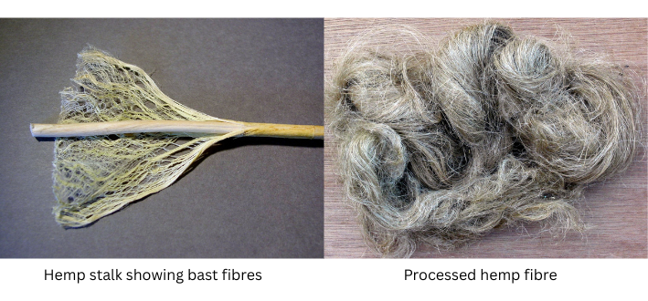 Hemp fibres come from the outer layer of the hemp plant’s stem. They belong to a category known as bast fibres, meaning they run in long bundles along the length of the plant. Extracting them involves separating these fibres from the woody core of the stem.